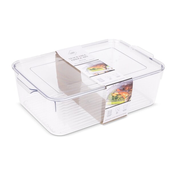 Stackable Fridge Bin with Lid And Double Handles - Medium