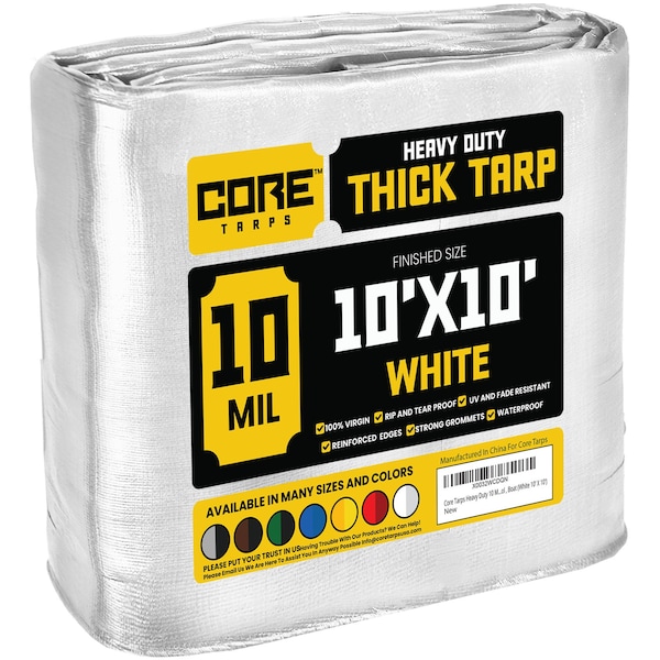Heavy Duty Tarp, 10 ft L x 0.5 mm H x 10 ft W, 10 Mil, White, Polyethylene