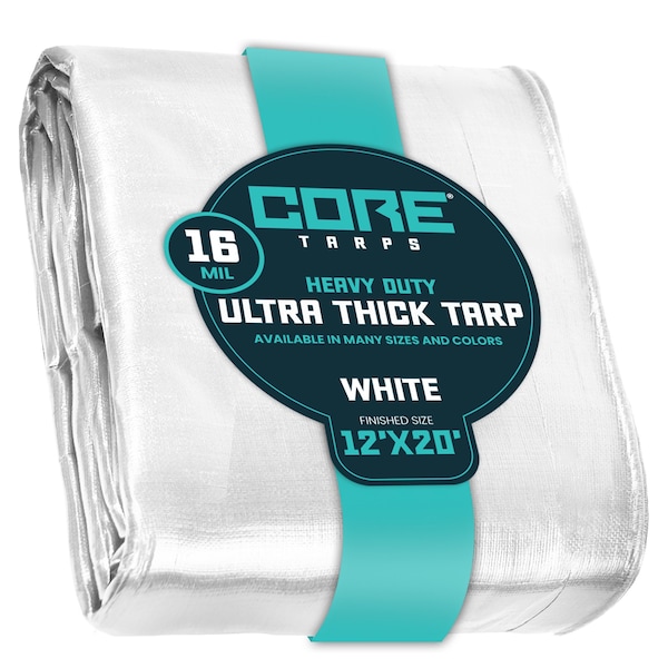 Heavy Duty Tarp, 20 ft L x 0.5 mm H x 12 ft W, 16 Mil, White, Polyethylene