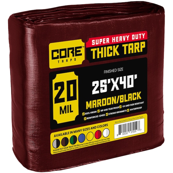 Heavy Duty Tarp, 25 ft x 40 ft, 20 Mil, Maroon, Polyethylene