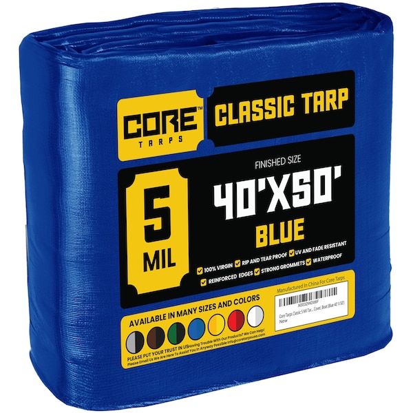 Heavy Duty Tarp, 50 ft L x 0.5 mm H x 40 ft W, 5 Mil, Blue, Polyethylene