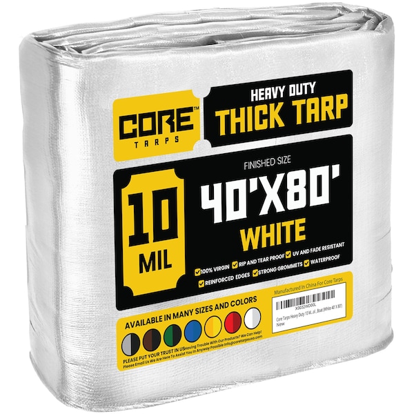 Heavy Duty Tarp, 80 ft L x 0.5 mm H x 40 ft W, 10 Mil, White, Polyethylene