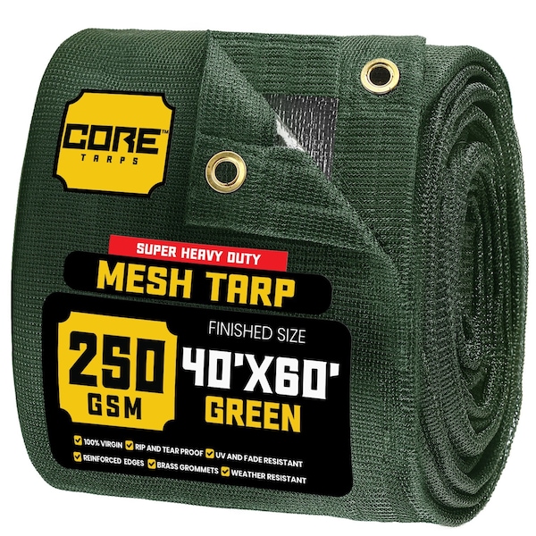 Mesh Tarp, 40X60 ft, Green, Polyethylene