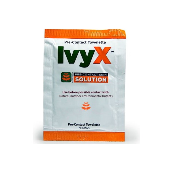 Coretex ivy x 83644 pre-contact barrier gel, posion oak & ivy solution, towelette, 300/case ivy x pre-contact skin solution dries quickly and is non-greasy, sticky or clay-like, which maybe found in other products. There is also no wait time, simply apply ivy x pre-contact to exposed skin and immediately start your outdoor task. Ivy x pre-contact is almost unnoticeable on the skin and washes off easily with soap and water. Our packaging towelettes, bottles & spray allows for a compliant and affordable skin protection program for the outside worker. priced per towelette