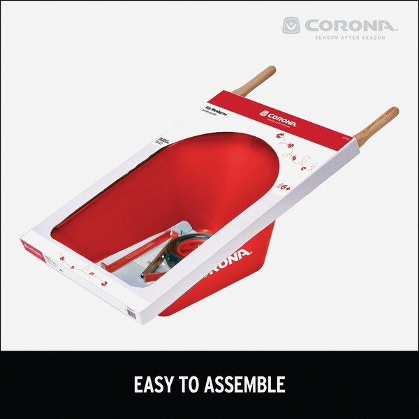 Corona kids wheelbarrow is easy to assemble and can carry small and light loads in and around the garden. Its poly tub wont rust and the solid wheel never goes flat.