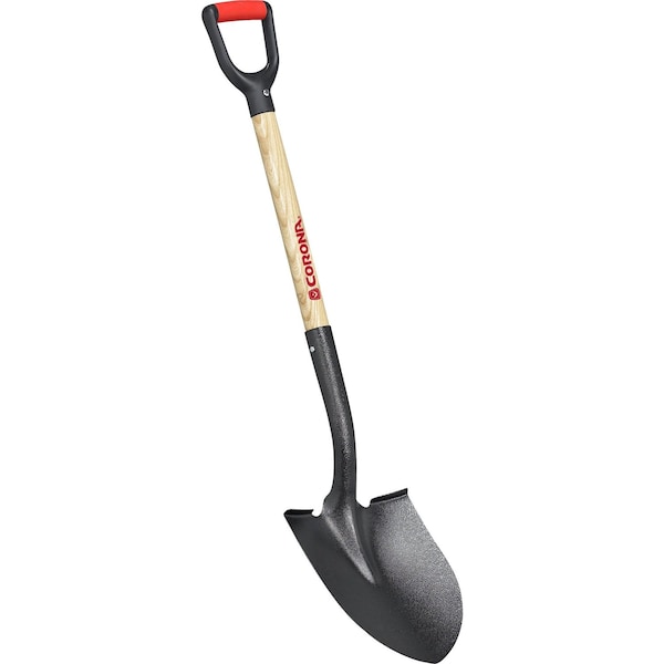 Round Point Shovel, 15-Gauge, 12 in. Head, 30 in. Wood Handle, Plastic D-Grip