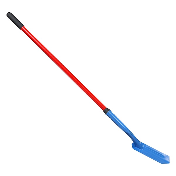 The SS 64123 Trench Shovel is angled 35 degrees and features a 3 in. head and a hollow fiberglass handle. It's perfect for cleaning existing trenches or digging new ones. The 35-degree blade angle helps minimize bending while cleaning and digging and the v-shaped beveled blade makes for easier soil penetration. Plus, the sole saver step reduces boot wear with its rounded corners. This trench shovel is color-coded blue for quick identification.