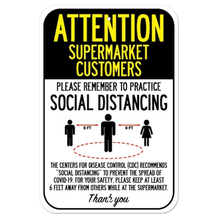 Public Safety Sign-Supermarket Customers Practice Social Distancing, 12" H, A-1218-25373