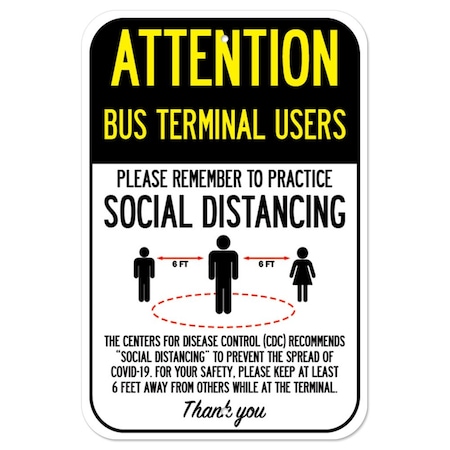 Public Safety Sign-Bus Riders Practice Social Distancing, Heavy-Gauge, 12" H, A-1218-25374