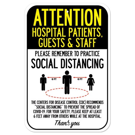 Public Safety Sign-Hospital Patients Guests & Staff Social Distancing, 12" H, A-1218-25400