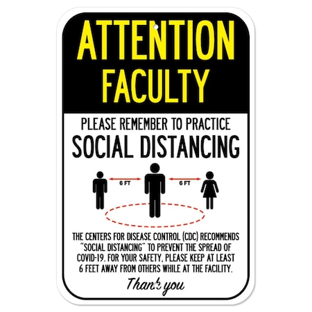 Public Safety Sign-Attention Faculty Practice Social Distancing, Heavy-Gauge, 12" H, A-1218-25410
