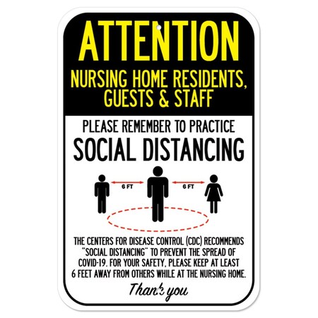 Public Safety Sign-Nursing Home Residents Guests & Staff Social Distancing, 12" H, A-1218-25384