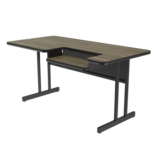 Correll 30"x60" Bi-Level Training & Computer Table. Colonial Hickory high pressure laminate top. 1-1/4" thick High pressure laminate surface, resists scratches and stains and offers a hard, flat writing surface, and is the same material used in kitchen countertops. Top also features a backer sheet on underside of table that helps protect against moisture entering the underside of the table causing warping. 10"x22" dropped down keyboard tray cutout on left side. Steel modesty panel with wire management. Black T-Mold edging to protect walls and table. Sturdy all steel frame with adjustable nylon leveling guides. YOU CAN COUNT ON CORRELL: Correll was established in 1969 and has been in business for over 50 years. With our outstanding Standing Customer Service, innovative new product lines, and the largest selection of Folding Tables available from any manufacturer, now, more than ever, you can count on Correll.