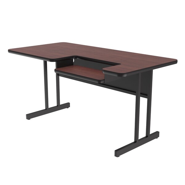 Correll 30"x72" Bi-Level Training & Computer Table. Mahogany high pressure laminate top. 1-1/4" thick High pressure laminate surface, resists scratches and stains and offers a hard, flat writing surface, and is the same material used in kitchen countertops. Top also features a backer sheet on underside of table that helps protect against moisture entering the underside of the table causing warping. 10"x22" dropped down keyboard tray cutout on left side. Steel modesty panel with wire management. Black T-Mold edging to protect walls and table. Sturdy all steel frame with adjustable nylon leveling guides. YOU CAN COUNT ON CORRELL: Correll was established in 1969 and has been in business for over 50 years. With our outstanding Standing Customer Service, innovative new product lines, and the largest selection of Folding Tables available from any manufacturer, now, more than ever, you can count on Correll.