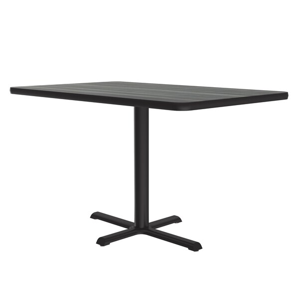 Correll Café, & Break Room Tables. Built for the harsh demands of Commercial use. 30"x42" New England Driftwood Rectangular high pressure laminate Top. Laminate surface resists scratches and stains and offers a hard, flat surface. Top also features a Backer sheet on underside of table that helps protect against moisture entering the underside of the table causing warping. Black textured cast iron spider and cross base with a steel column for strength and durability. Bases include nylon leveling guides for study placement. Black T-Mold edges provide protection to both the table and your walls. Meets BIFMA Standards. . YOU CAN COUNT ON CORRELL: Correll was established in 1969 and has been in business for over 50 years. With our out Standing Customer Service, innovative new product lines, and the largest selection of Folding Tables available from any manufacturer, now, more than ever, you can count on Correll.