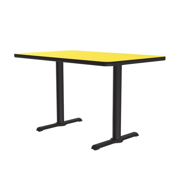 Correll Café, & Break Room Tables. Built for the harsh demands of Commercial use. 30"x60" Yellow Rectangular high pressure laminate Top. Laminate surface resists scratches and stains and offers a hard, flat surface. Top also features a Backer sheet on underside of table that helps protect against moisture entering the underside of the table causing warping. Black textured cast iron spider and dual T-bases with 2 steel columns for strength and durability. Bases include nylon leveling guides for study placement. Black T-Mold edges provide protection to both the table and your walls. Meets BIFMA Standards. . YOU CAN COUNT ON CORRELL: Correll was established in 1969 and has been in business for over 50 years. With our out Standing Customer Service, innovative new product lines, and the largest selection of Folding Tables available from any manufacturer, now, more than ever, you can count on Correll.