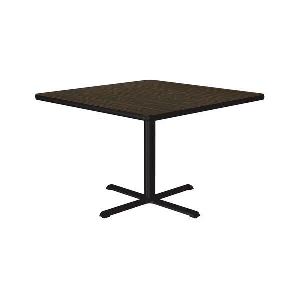 Correll Café, & Break Room Tables. Built for the harsh demands of Commercial use. Standard 29" high table. 36" Square Walnut high pressure laminate Top. Laminate surface resists scratches and stains and offers a hard, flat surface. Top also features a Backer sheet on underside of table that helps protect against moisture entering the underside of the table causing warping. Black textured cast iron spider and X-base with 3" steel column for strength and durability. Bases include nylon leveling guides for study placement. Black T-Mold edges provide protection to both the table and your walls. Meets BIFMA Standards. . YOU CAN COUNT ON CORRELL: Correll was established in 1969 and has been in business for over 50 years. With our out Standing Customer Service, innovative new product lines, and the largest selection of Folding Tables available from any manufacturer, now, more than ever, you can count on Correll.