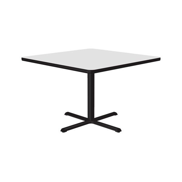 Correll Café, & Break Room Tables. Built for the harsh demands of Commercial use. Standard 29" high table. 36" Square White high pressure laminate Top. Laminate surface resists scratches and stains and offers a hard, flat surface. Top also features a Backer sheet on underside of table that helps protect against moisture entering the underside of the table causing warping. Black textured cast iron spider and X-base with 3" steel column for strength and durability. Bases include nylon leveling guides for study placement. Black T-Mold edges provide protection to both the table and your walls. Meets BIFMA Standards. . YOU CAN COUNT ON CORRELL: Correll was established in 1969 and has been in business for over 50 years. With our out Standing Customer Service, innovative new product lines, and the largest selection of Folding Tables available from any manufacturer, now, more than ever, you can count on Correll.
