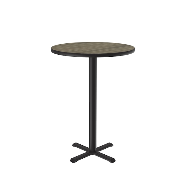 Correll Café, & Break Room Tables. Built for the harsh demands of Commercial use. These 42" bar height tables are the perfect height for standing or use with stools. 24" round Colonial Hickory Rectangular high pressure laminate Top. Laminate surface resists scratches and stains and offers a hard, flat surface. Top also features a Backer sheet on underside of table that helps protect against moisture entering the underside of the table causing warping. Black textured cast iron spider and X-base with 3" steel column for strength and durability. Bases include nylon leveling guides for study placement. Black T-Mold edges provide protection to both the table and your walls. Meets BIFMA Standards. . YOU CAN COUNT ON CORRELL: Correll was established in 1969 and has been in business for over 50 years. With our out Standing Customer Service, innovative new product lines, and the largest selection of Folding Tables available from any manufacturer, now, more than ever, you can count on Correll.