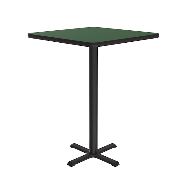 Correll Café, & Break Room Tables. Built for the harsh demands of Commercial use. These 42" bar height tables are the perfect height for standing or use with stools. 24" Square Green Rectangular high pressure laminate Top. Laminate surface resists scratches and stains and offers a hard, flat surface. Top also features a Backer sheet on underside of table that helps protect against moisture entering the underside of the table causing warping. Black textured cast iron spider and X-base with 3" steel column for strength and durability. Bases include nylon leveling guides for study placement. Black T-Mold edges provide protection to both the table and your walls. Meets BIFMA Standards. . YOU CAN COUNT ON CORRELL: Correll was established in 1969 and has been in business for over 50 years. With our out Standing Customer Service, innovative new product lines, and the largest selection of Folding Tables available from any manufacturer, now, more than ever, you can count on Correll.