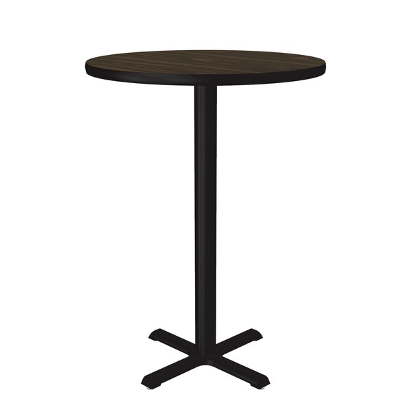 Correll Café, & Break Room Tables. Built for the harsh demands of Commercial use. These 42" bar height tables are the perfect height for standing or use with stools. 30" round Walnut Rectangular high pressure laminate Top. Laminate surface resists scratches and stains and offers a hard, flat surface. Top also features a Backer sheet on underside of table that helps protect against moisture entering the underside of the table causing warping. Black textured cast iron spider and X-base with 3" steel column for strength and durability. Bases include nylon leveling guides for study placement. Black T-Mold edges provide protection to both the table and your walls. Meets BIFMA Standards. . YOU CAN COUNT ON CORRELL: Correll was established in 1969 and has been in business for over 50 years. With our out Standing Customer Service, innovative new product lines, and the largest selection of Folding Tables available from any manufacturer, now, more than ever, you can count on Correll.