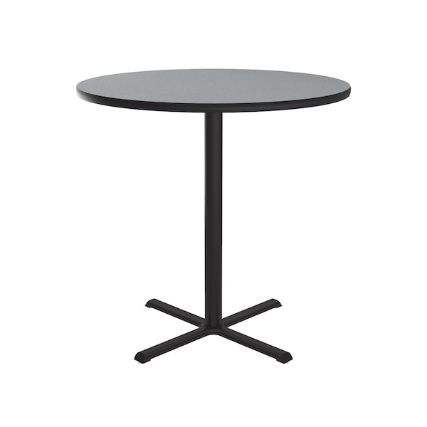 Correll Café, & Break Room Tables. Built for the harsh demands of Commercial use. These 42" bar height tables are the perfect height for standing or use with stools. 36" Round Gray Granite Rectangular Thermal Fused laminate Top. Thermal Fused Laminate (TFL) is a resin infused laminate not glued on like high pressure laminate, it is fused to the board using a heat treatment process. 1 1/4" thick high density top is sealed on both sides preventing moisture from entering the table and causing warping. Black textured cast iron spider and X-base with 3" steel column for strength and durability. Bases include nylon leveling guides for study placement. Black T-Mold edges provide protection to both the table and your walls. Meets BIFMA Standards. . YOU CAN COUNT ON CORRELL: Correll was established in 1969 and has been in business for over 50 years. With our out Standing Customer Service, innovative new product lines, and the largest selection of Folding Tables available from any manufacturer, now, more than ever, you can count on Correll.
