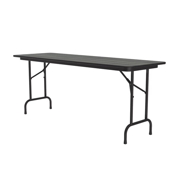 Correll Commercial Duty Top Folding Tables. 24"x96" Rectangular New England Driftwood high pressure laminate surface, resists scratches and stains and has a hard, flat writing surface. Heavy Duty 5/8" thick high density particle board core with backer sheet to prevent warping from moisture from entering the table. Heavy duty 1" Steel legs and one piece Strong steel frame / apron supports the top. Automatic lock open folding legs helps to prevents accidents. Black frame and T molding. Mar Proof plastic foot caps to help protect floors and T molding edge protects the table as well as your walls. Heavy Duty construction, Ideal in public and commercial spaces including schools and places of worship. You Can Count On Correll: Correll was established in 1969 and has been in business for over 50 years. With our outstanding Standing Customer Service, innovative new product lines, and the largest selection of Folding Tables available from any manufacturer, now, more than ever, you can count on Correll.