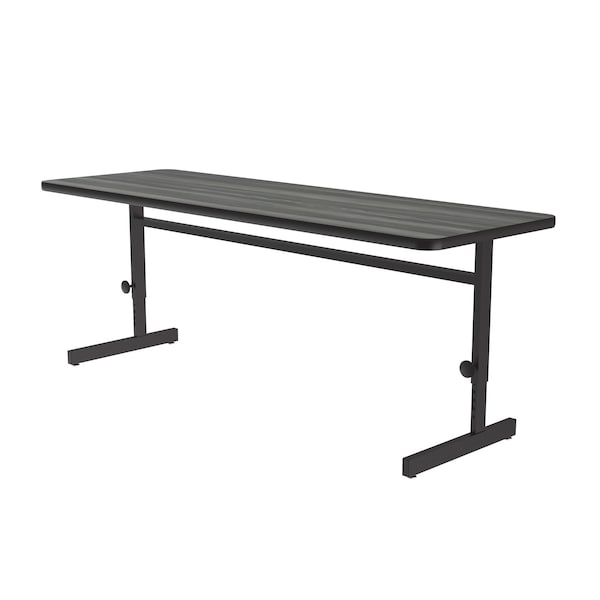 Correll Adjustable Height Computer Work Station. 24"x72" Rectangular shaped New England Driftwood HPL Laminate top. HPL Laminate resists scratch's, paint, markers, crayons, and food and juice stains far better than melamine. Table easily adjusts from 21" to 29" high in 1" increments. Includes both tamper-proof set screws and large easy to use knobs for secure height adjustments. Top sits on Black sturdy all steel frame with adjustable leveling guides. Custom Built-to-Order since 1969. YOU CAN COUNT ON CORRELL: Correll was established in 1969 and has been in business for over 50 years. With our outstanding Standing Customer Service, innovative new product lines, and the largest selection of Folding Tables available from any manufacturer, now, more than ever, you can count on Correll..