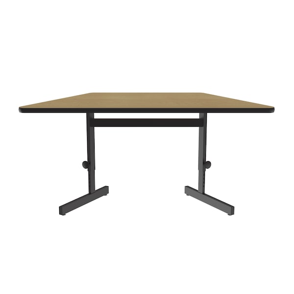 Correll Adjustable Height Computer Work Station. 30"x60" Trapezoid shaped Fusion Maple HPL Laminate top. HPL Laminate resists scratch's, paint, markers, crayons, and food and juice stains far better than melamine. Table easily adjusts from 21" to 29" high in 1" increments. Includes both tamper-proof set screws and large easy to use knobs for secure height adjustments. Top sits on Black sturdy all steel frame with adjustable leveling guides. Custom Built-to-Order since 1969. YOU CAN COUNT ON CORRELL: Correll was established in 1969 and has been in business for over 50 years. With our outstanding Standing Customer Service, innovative new product lines, and the largest selection of Folding Tables available from any manufacturer, now, more than ever, you can count on Correll..