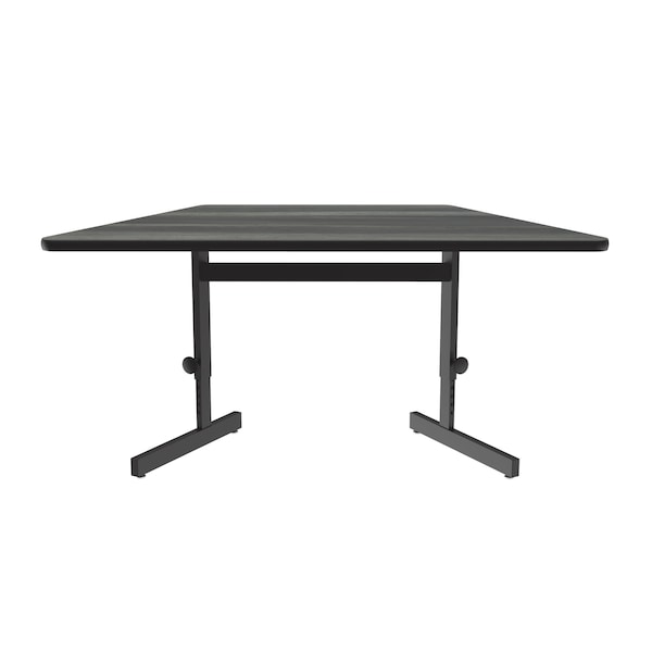 Correll Adjustable Height Computer Work Station. 30"x60" Trapezoid shaped New England Driftwood HPL Laminate top. HPL Laminate resists scratch's, paint, markers, crayons, and food and juice stains far better than melamine. Table easily adjusts from 21" to 29" high in 1" increments. Includes both tamper-proof set screws and large easy to use knobs for secure height adjustments. Top sits on Black sturdy all steel frame with adjustable leveling guides. Custom Built-to-Order since 1969. YOU CAN COUNT ON CORRELL: Correll was established in 1969 and has been in business for over 50 years. With our outstanding Standing Customer Service, innovative new product lines, and the largest selection of Folding Tables available from any manufacturer, now, more than ever, you can count on Correll..