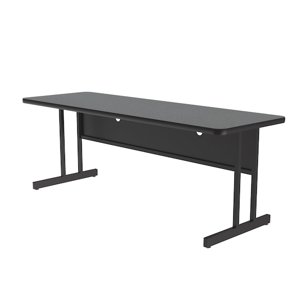 Correll Keyboard Height Computer & Training Table. 24"x60" Montana Granite Rectangular high Pressure Laminate top. high Pressure Laminate resists scratch's, paint, markers, crayons, and food and juice stains far better than melamine. These workstations are 26" high the perfect Ergonomic Keyboard height. The 1-1/4" thick core with backer sheet helps to prevent warping. They feature Black steel frames and T-Mold edging and sturdy all Steel frames with adjustable leveling guides. The Steel modesty panels with wire management hole and wire trough make for a clean look. YOU CAN COUNT ON CORRELL: Correll was established in 1969 and has been in business for over 50 years. With our outstanding Standing Customer Service, innovative new product lines, and the largest selection of Folding Tables available from any manufacturer, now, more than ever, you can count on Correll.
