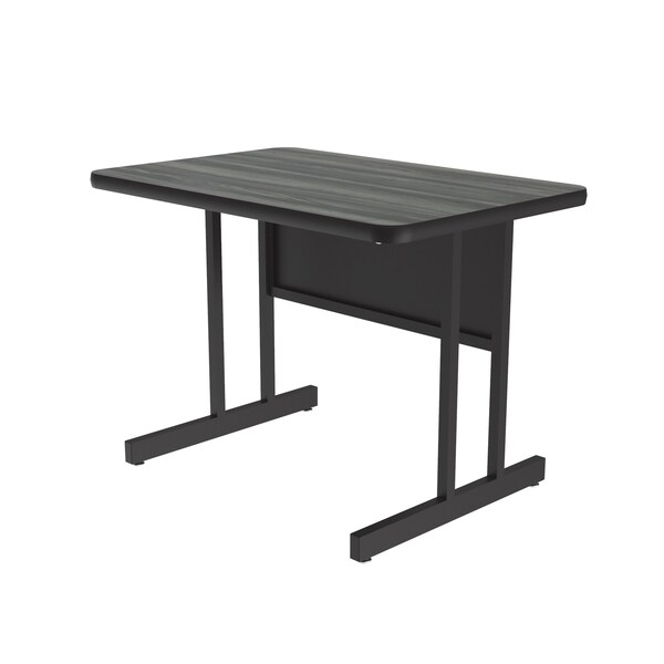 Correll Keyboard Height Computer & Training Table. 30"x48" New England Driftwood Rectangular high Pressure Laminate top. high Pressure Laminate resists scratch's, paint, markers, crayons, and food and juice stains far better than melamine. These workstations are 26" high the perfect Ergonomic Keyboard height. The 1-1/4" thick core with backer sheet helps to prevent warping. They feature Black steel frames and T-Mold edging and sturdy all Steel frames with adjustable leveling guides. The Steel modesty panels with wire management hole and wire trough make for a clean look. YOU CAN COUNT ON CORRELL: Correll was established in 1969 and has been in business for over 50 years. With our outstanding Standing Customer Service, innovative new product lines, and the largest selection of Folding Tables available from any manufacturer, now, more than ever, you can count on Correll.