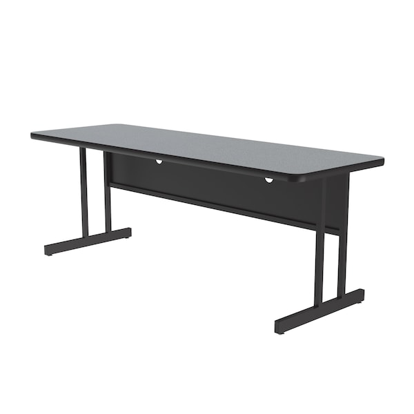 Correll Keyboard Height Computer & Training Table. 24"x60" Gray Granite Rectangular Two Sided Thermal Laminate Top. Thermal Fused Laminate (TFL) is a resin infused laminate not glued on like high pressure laminate, it is fused to the board using a heat treatment process. 1 1/4" thick Thermal Laminate top resists scratches, dents, paint, markers, crayons, and food and juice stains far better than melamine. Top is sealed on both sides preventing moisture from entering the table and causing warping. These workstations are 26" high the perfect Ergonomic Keyboard height. Desks feature Black steel frames and T-Mold edging and sturdy all Steel frames with adjustable leveling guides. The Steel modesty panels with wire management hole and wire trough make for a clean look. YOU CAN COUNT ON CORRELL: Correll was established in 1969 and has been in business for over 50 years. With our outstanding Standing Customer Service, innovative new product lines, and the largest selection of Folding Tables available from any manufacturer, now, more than ever, you can count on Correll.