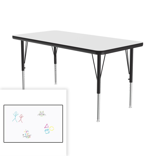 Correll Height Adjustable Activity Table. Table Size is 24"x60" Rectangle. Height adjustable from 19" to 29" in 1" increments (perfect for kindergarten to adult) Speedwrench included for fast and secure height adjustments. High Pressure Laminate resists scratch's, food and stains far better than melamine, solid white dry erase / markerboard top encourages student collaboration. 1-1/8" High Density particle board core provides strength. Heavy Duty legs include oversize hairpin brace and shouldered set screws for maximum safety. Shoulder on leg set screw provides an extra measure of security even if the legs are not properly tightened. Leg mounting brackets are pre attached with 7 screws plus 3 additional screws in the leg plate. Black T-Mold edging and black and chrome legs. Tables are custom built to order. YOU CAN COUNT ON CORRELL: Correll was established in 1969 and has been in business for over 50 years. With our outstanding Standing Customer Service, innovative new product lines, and the largest selection of Folding Tables available from any manufacturer, now, more than ever, you can count on Correll.