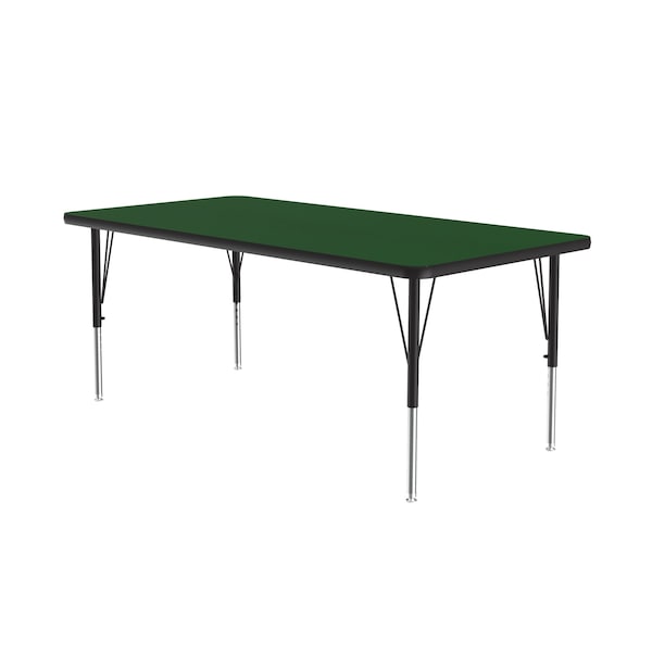 Correll Height Adjustable Activity Table. Table Size is 30"x60" Rectangle. Height adjustable from 19" to 29" in 1" increments (perfect for kindergarten to adult) Speedwrench included for fast and secure height adjustments. Green High Pressure Laminate resists scratch's, paint, markers, crayons, and food and juice stains far better than melamine. 1-1/8" High Density particle board core provides strength. Heavy Duty legs include oversize hairpin brace and shouldered set screws for maximum safety. Shoulder on leg set screw provides an extra measure of security even if the legs are not properly tightened. Leg mounting brackets are pre attached with 7 screws plus 3 additional screws in the leg plate. Black T-Mold edging and black and chrome legs. Tables are custom built to order. YOU CAN COUNT ON CORRELL: Correll was established in 1969 and has been in business for over 50 years. With our outstanding Standing Customer Service, innovative new product lines, and the largest selection of Folding Tables available from any manufacturer, now, more than ever, you can count on Correll.