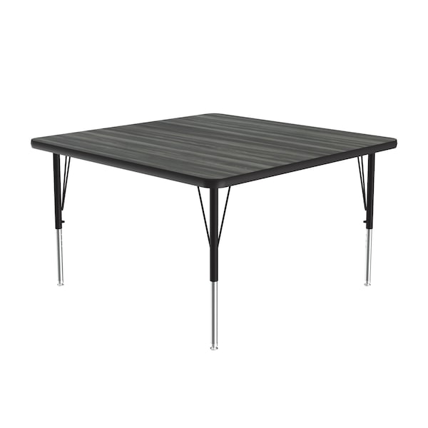Correll Height Adjustable Activity Table. Table Size is 36" Square. Height adjustable from 19" to 29" in 1" increments (perfect for kindergarten to adult) Speedwrench included for fast and secure height adjustments. New England Driftwood High Pressure Laminate resists scratch's, paint, markers, crayons, and food and juice stains far better than melamine. 1-1/8" High Density particle board core provides strength. Heavy Duty legs include oversize hairpin brace and shouldered set screws for maximum safety. Shoulder on leg set screw provides an extra measure of security even if the legs are not properly tightened. Leg mounting brackets are pre attached with 7 screws plus 3 additional screws in the leg plate. Black T-Mold edging and black and chrome legs. Tables are custom built to order. YOU CAN COUNT ON CORRELL: Correll was established in 1969 and has been in business for over 50 years. With our outstanding Standing Customer Service, innovative new product lines, and the largest selection of Folding Tables available from any manufacturer, now, more than ever, you can count on Correll.