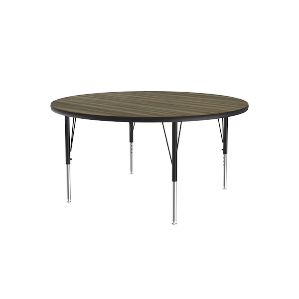 Correll Height Adjustable Activity Table. Table Size is 42" round. Height adjustable from 19" to 29" in 1" increments (perfect for kindergarten to adult) Speedwrench included for fast and secure height adjustments. Colonial Hickory High Pressure Laminate resists scratch's, paint, markers, crayons, and food and juice stains far better than melamine. 1-1/8" High Density particle board core provides strength. Heavy Duty legs include oversize hairpin brace and shouldered set screws for maximum safety. Shoulder on leg set screw provides an extra measure of security even if the legs are not properly tightened. Leg mounting brackets are pre attached with 7 screws plus 3 additional screws in the leg plate. Black T-Mold edging and black and chrome legs. Tables are custom built to order. YOU CAN COUNT ON CORRELL: Correll was established in 1969 and has been in business for over 50 years. With our outstanding Standing Customer Service, innovative new product lines, and the largest selection of Folding Tables available from any manufacturer, now, more than ever, you can count on Correll.