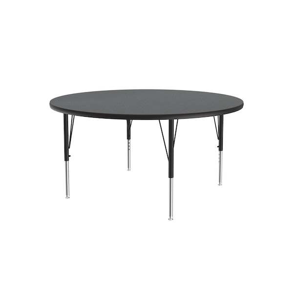 Correll Height Adjustable Activity Table. Table Size is 42" round. Height adjustable from 19" to 29" in 1" increments (perfect for kindergarten to adult) Speedwrench included for fast and secure height adjustments. Montana Granite High Pressure Laminate resists scratch's, paint, markers, crayons, and food and juice stains far better than melamine. 1-1/8" High Density particle board core provides strength. Heavy Duty legs include oversize hairpin brace and shouldered set screws for maximum safety. Shoulder on leg set screw provides an extra measure of security even if the legs are not properly tightened. Leg mounting brackets are pre attached with 7 screws plus 3 additional screws in the leg plate. Black T-Mold edging and black and chrome legs. Tables are custom built to order. YOU CAN COUNT ON CORRELL: Correll was established in 1969 and has been in business for over 50 years. With our outstanding Standing Customer Service, innovative new product lines, and the largest selection of Folding Tables available from any manufacturer, now, more than ever, you can count on Correll.