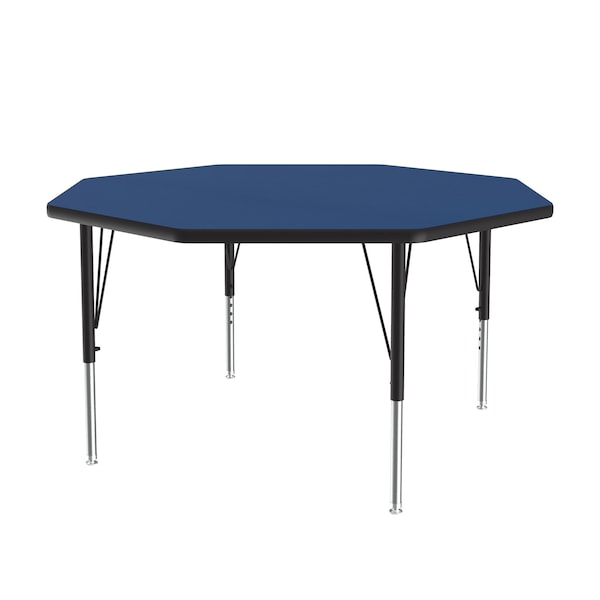 Correll Height Adjustable Activity Table. Table Size is 48" Octagon Shaped. Height adjustable from 19" to 29" in 1" increments (perfect for kindergarten to adult) Speedwrench included for fast and secure height adjustments. Blue High Pressure Laminate resists scratch's, paint, markers, crayons, and food and juice stains far better than melamine. 1-1/8" High Density particle board core provides strength. Heavy Duty legs include oversize hairpin brace and shouldered set screws for maximum safety. Shoulder on leg set screw provides an extra measure of security even if the legs are not properly tightened. Leg mounting brackets are pre attached with 7 screws plus 3 additional screws in the leg plate. Black T-Mold edging and black and chrome legs. Tables are custom built to order. YOU CAN COUNT ON CORRELL: Correll was established in 1969 and has been in business for over 50 years. With our outstanding Standing Customer Service, innovative new product lines, and the largest selection of Folding Tables available from any manufacturer, now, more than ever, you can count on Correll.