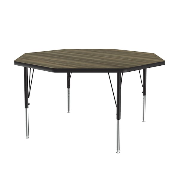 Correll Height Adjustable Activity Table. Table Size is 48" Octagon Shaped. Height adjustable from 19" to 29" in 1" increments (perfect for kindergarten to adult) Speedwrench included for fast and secure height adjustments. Colonial Hickory High Pressure Laminate resists scratch's, paint, markers, crayons, and food and juice stains far better than melamine. 1-1/8" High Density particle board core provides strength. Heavy Duty legs include oversize hairpin brace and shouldered set screws for maximum safety. Shoulder on leg set screw provides an extra measure of security even if the legs are not properly tightened. Leg mounting brackets are pre attached with 7 screws plus 3 additional screws in the leg plate. Black T-Mold edging and black and chrome legs. Tables are custom built to order. YOU CAN COUNT ON CORRELL: Correll was established in 1969 and has been in business for over 50 years. With our outstanding Standing Customer Service, innovative new product lines, and the largest selection of Folding Tables available from any manufacturer, now, more than ever, you can count on Correll.
