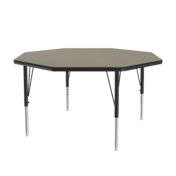 Correll Height Adjustable Activity Table. Table Size is 48" Octagon Shaped. Height adjustable from 19" to 29" in 1" increments (perfect for kindergarten to adult) Speedwrench included for fast and secure height adjustments. Savannah Sand High Pressure Laminate resists scratch's, paint, markers, crayons, and food and juice stains far better than melamine. 1-1/8" High Density particle board core provides strength. Heavy Duty legs include oversize hairpin brace and shouldered set screws for maximum safety. Shoulder on leg set screw provides an extra measure of security even if the legs are not properly tightened. Leg mounting brackets are pre attached with 7 screws plus 3 additional screws in the leg plate. Black T-Mold edging and black and chrome legs. Tables are custom built to order. YOU CAN COUNT ON CORRELL: Correll was established in 1969 and has been in business for over 50 years. With our outstanding Standing Customer Service, innovative new product lines, and the largest selection of Folding Tables available from any manufacturer, now, more than ever, you can count on Correll.