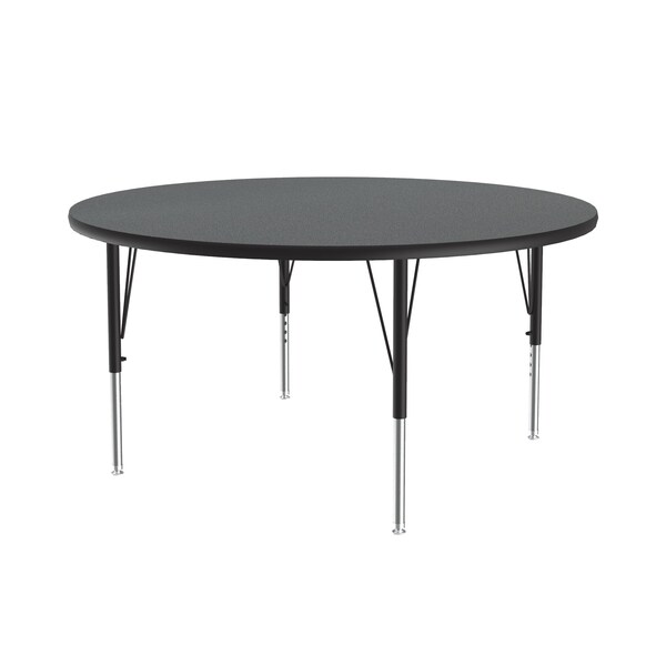 Correll Height Adjustable Activity Table. Table Size is 48" round. Height adjustable from 19" to 29" in 1" increments (perfect for kindergarten to adult) Speedwrench included for fast and secure height adjustments. Montana Granite High Pressure Laminate resists scratch's, paint, markers, crayons, and food and juice stains far better than melamine. 1-1/8" High Density particle board core provides strength. Heavy Duty legs include oversize hairpin brace and shouldered set screws for maximum safety. Shoulder on leg set screw provides an extra measure of security even if the legs are not properly tightened. Leg mounting brackets are pre attached with 7 screws plus 3 additional screws in the leg plate. Black T-Mold edging and black and chrome legs. Tables are custom built to order. YOU CAN COUNT ON CORRELL: Correll was established in 1969 and has been in business for over 50 years. With our outstanding Standing Customer Service, innovative new product lines, and the largest selection of Folding Tables available from any manufacturer, now, more than ever, you can count on Correll.