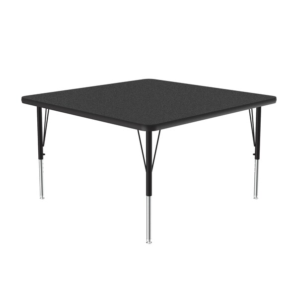 Correll Height Adjustable Activity Table. Table Size is 48" Square. Height adjustable from 19" to 29" in 1" increments (perfect for kindergarten to adult) Speedwrench included for fast and secure height adjustments. Black Granite High Pressure Laminate resists scratch's, paint, markers, crayons, and food and juice stains far better than melamine. 1-1/8" High Density particle board core provides strength. Heavy Duty legs include oversize hairpin brace and shouldered set screws for maximum safety. Shoulder on leg set screw provides an extra measure of security even if the legs are not properly tightened. Leg mounting brackets are pre attached with 7 screws plus 3 additional screws in the leg plate. Black T-Mold edging and black and chrome legs. Tables are custom built to order. YOU CAN COUNT ON CORRELL: Correll was established in 1969 and has been in business for over 50 years. With our outstanding Standing Customer Service, innovative new product lines, and the largest selection of Folding Tables available from any manufacturer, now, more than ever, you can count on Correll.