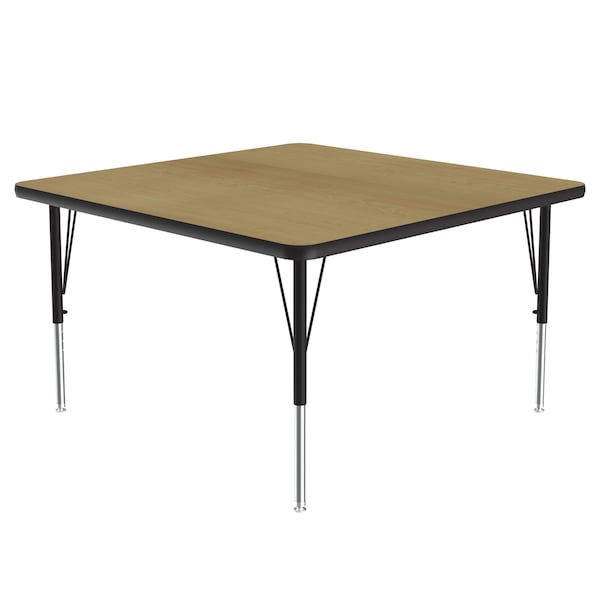 Correll Height Adjustable Activity Table. Table Size is 48" Square. Height adjustable from 19" to 29" in 1" increments (perfect for kindergarten to adult) Speedwrench included for fast and secure height adjustments. Fusion Maple High Pressure Laminate resists scratch's, paint, markers, crayons, and food and juice stains far better than melamine. 1-1/8" High Density particle board core provides strength. Heavy Duty legs include oversize hairpin brace and shouldered set screws for maximum safety. Shoulder on leg set screw provides an extra measure of security even if the legs are not properly tightened. Leg mounting brackets are pre attached with 7 screws plus 3 additional screws in the leg plate. Black T-Mold edging and black and chrome legs. Tables are custom built to order. YOU CAN COUNT ON CORRELL: Correll was established in 1969 and has been in business for over 50 years. With our outstanding Standing Customer Service, innovative new product lines, and the largest selection of Folding Tables available from any manufacturer, now, more than ever, you can count on Correll.