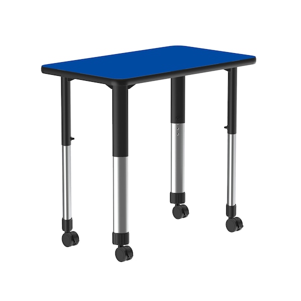 Correll Adjustable Height Collaborative Desk. Blue 23"x33" Rectangular shaped top. HPL Laminate resists scratch's, paint, markers, crayons, and food and juice stains far better than melamine. Black adjustable height legs can be set from 25” to 35” in 1” increments and includes Hex Wrench for fast height adjustments. 4 locking castors for easy mobility. Backer sheet on underside of table helps in preventing moisture from entering the table and causing warping. Correll helps you create a modern creative transformable workspace. Strong steel frame and Black T-Mold edging to protect the table as well as your walls. Heavy Duty yet portable for easy storage. Ideal for demanding environments. YOU CAN COUNT ON CORRELL: Correll was established in 1969 and has been in business for over 50 years. With our out Standing Customer Service, innovative new product lines, and the largest selection of Folding Tables available from any manufacturer, now, more than ever, you can count on Correll.
