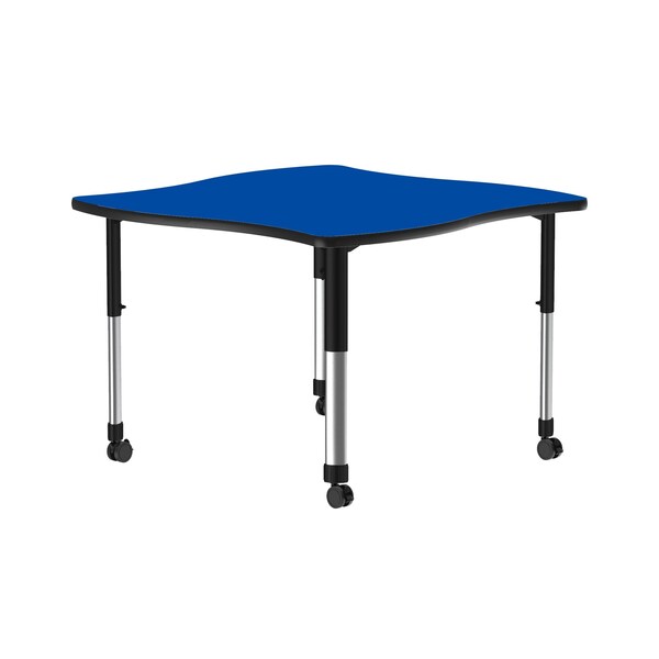 Correll Adjustable Height Collaborative Desk. Blue 23"x33" Swerve shaped top. HPL Laminate resists scratch's, paint, markers, crayons, and food and juice stains far better than melamine. Black adjustable height legs can be set from 25” to 35” in 1” increments and includes Hex Wrench for fast height adjustments. 4 locking castors for easy mobility. Backer sheet on underside of table helps in preventing moisture from entering the table and causing warping. Correll helps you create a modern creative transformable workspace. Strong steel frame and Black T-Mold edging to protect the table as well as your walls. Heavy Duty yet portable for easy storage. Ideal for demanding environments. YOU CAN COUNT ON CORRELL: Correll was established in 1969 and has been in business for over 50 years. With our out Standing Customer Service, innovative new product lines, and the largest selection of Folding Tables available from any manufacturer, now, more than ever, you can count on Correll.