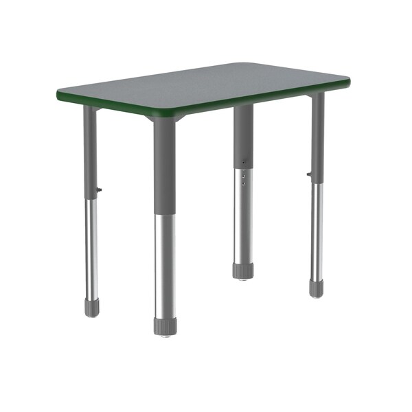Correll Adjustable Height Collaborative Desk. Gray Granite 23"x33" Rectangular shaped top. HPL Laminate resists scratch's, paint, markers, crayons, and food and juice stains far better than melamine. Gray adjustable height legs can be set from 25” to 35” in 1” increments and includes Hex Wrench for fast height adjustments. Backer sheet on underside of table helps in preventing moisture from entering the table and causing warping. Correll helps you create a modern creative transformable workspace. Strong steel frame and green T-Mold edging to protect the table as well as your walls. Heavy Duty yet portable for easy storage. Ideal for demanding environments. YOU CAN COUNT ON CORRELL: Correll was established in 1969 and has been in business for over 50 years. With our out Standing Customer Service, innovative new product lines, and the largest selection of Folding Tables available from any manufacturer, now, more than ever, you can count on Correll.
