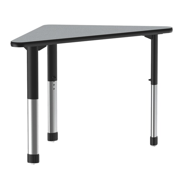 Correll Adjustable Height Collaborative Desk. Gray Granite 23"x33" Wing shaped top. HPL Laminate resists scratch's, paint, markers, crayons, and food and juice stains far better than melamine. Black adjustable height legs can be set from 25” to 35” in 1” increments and includes Hex Wrench for fast height adjustments. Backer sheet on underside of table helps in preventing moisture from entering the table and causing warping. Correll helps you create a modern creative transformable workspace. Strong steel frame and Black T-Mold edging to protect the table as well as your walls. Heavy Duty yet portable for easy storage. Ideal for demanding environments. YOU CAN COUNT ON CORRELL: Correll was established in 1969 and has been in business for over 50 years. With our out Standing Customer Service, innovative new product lines, and the largest selection of Folding Tables available from any manufacturer, now, more than ever, you can count on Correll.