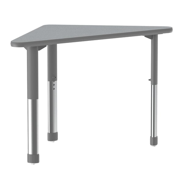 Correll Adjustable Height Collaborative Desk. Gray Granite 23"x33" Wing shaped top. HPL Laminate resists scratch's, paint, markers, crayons, and food and juice stains far better than melamine. Gray adjustable height legs can be set from 25” to 35” in 1” increments and includes Hex Wrench for fast height adjustments. Backer sheet on underside of table helps in preventing moisture from entering the table and causing warping. Correll helps you create a modern creative transformable workspace. Strong steel frame and Gray T-Mold edging to protect the table as well as your walls. Heavy Duty yet portable for easy storage. Ideal for demanding environments. YOU CAN COUNT ON CORRELL: Correll was established in 1969 and has been in business for over 50 years. With our out Standing Customer Service, innovative new product lines, and the largest selection of Folding Tables available from any manufacturer, now, more than ever, you can count on Correll.