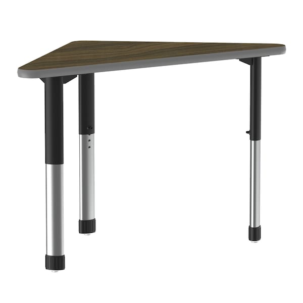 Correll Adjustable Height Collaborative Desk. Walnut 30" X 41" Wing Thermal Fused Laminate top resists scratches, dents, paint, markers, crayons, and food and juice stains. Thermal Fused Laminate (TFL) is a resin infused laminate not glued on like high pressure laminate, it is fused to the board using a heat treatment process. Black/Chrome adjustable height legs can be set from 25” to 35” in 1” increments and includes Hex Wrench for fast height adjustments. Gray T-Mold edging to protect the table as well as your walls. Heavy Duty yet portable for easy storage. Ideal for demanding environments. YOU CAN COUNT ON CORRELL: Correll was established in 1969 and has been in business for over 50 years. With our out Standing Customer Service, innovative new product lines, and the largest selection of Folding Tables available from any manufacturer, now, more than ever, you can count on Correll.